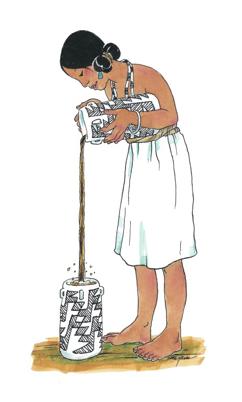 An illustration for Dr. Patricia Crown of the University of New Mexico, showing the technique presumably used a thousand years ago by the inhabitants of Chaco Canyon, New Mexico, to froth a drink made from cacao traded up from Mexico. Arguing the details with three archaeologists and four Pueblo consultants took six weeks and about fifty emails. Love this kind of dialogue!