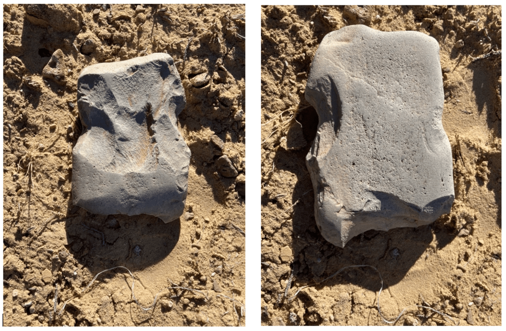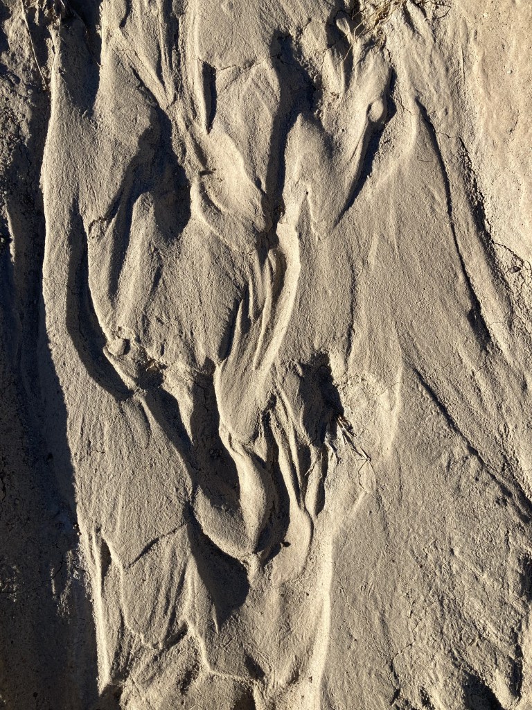 And speaking of stakes, we were not the first discovers. Above and below the scatter were short lengths of rebar with aluminum tags–now illegible, leaving the bones once again to their quiet unmaking.