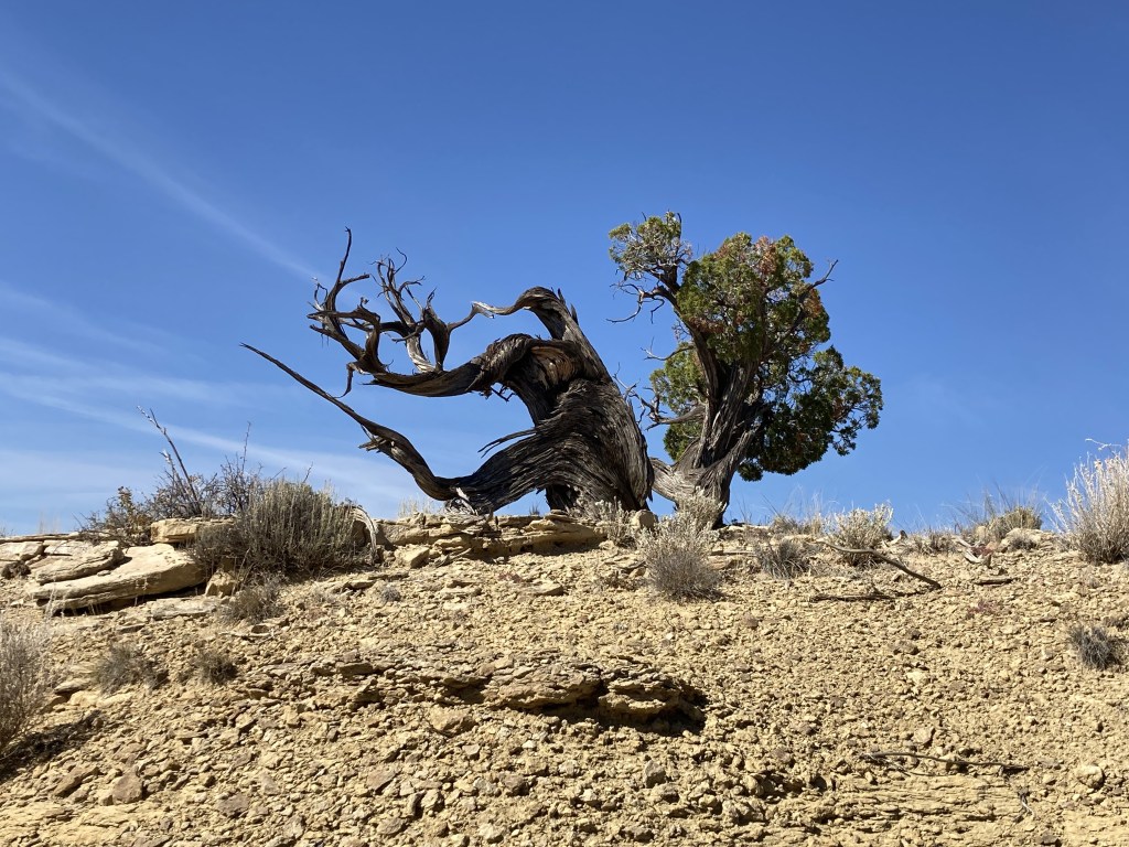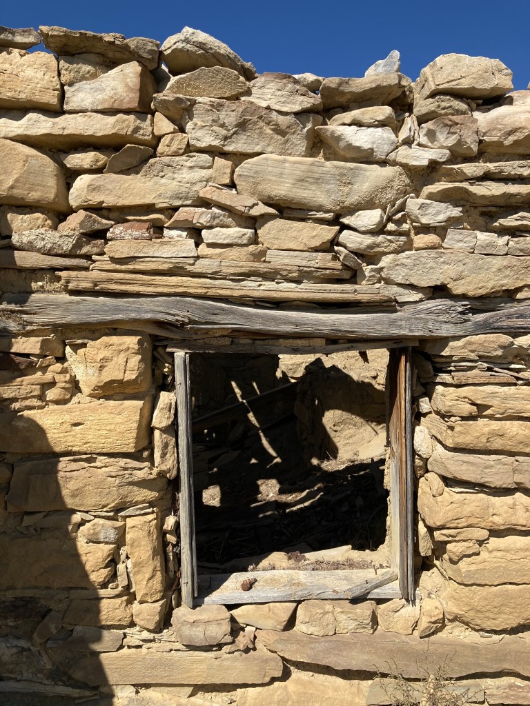 Like the circle in the earlier post, this one was in the wrong place and with the wrong doorway opening to be a hogan ring. Its lichened stones were next to the collapsed foundations of a Puebloan fieldhouse, ca. 1300s (my best guess; post-Chaco). But it didn’t have the sunken center typical of a kiva depression, and seemed too small for that as well.