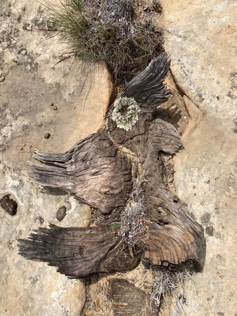 Sheer mesa, Cretaceous mudlands, lightning-blasted ponderosas. But what struck me were the sherds of a busted sixties coffee mug and an open safety pin.