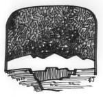 Bushwhacking in the dense piñon-juniper and oak brush that covered the mesa, on a windy day that obscured all sound. I was newly aware of how one tracks companions by constant, quick glances through the twiggage, near-subliminal glimpses every four to eight seconds: a scrap of color, a blink of movement out of place against the moving background. It’s an almost-unconscious art, and takes practice. First we lost Rob, then Gary, then John.
