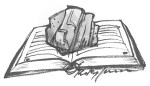 I forgot to say that on an Archaic site on the ridgetop was a broken mano, a hand-grinding stone: pretty, crystalline, red and white and yellow, with a slanted natural edge of white quartzite along one side. The edge made a perfect place for the user of the stone, probably a teenager, to hook her fingers. So I hooked my own fingers there, thinking: After five thousand years–fifty centuries–this stone remembers the grip of a hand.