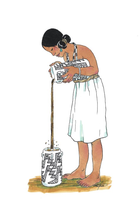 For Dr. Patricia Crown of the University of New Mexico, to illustrate the frothing of cacao drinks at Chaco Canyon