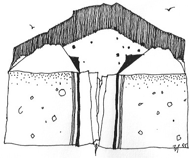 The third in situ in a messy prehistoric living room, now cross-trodden by cows: