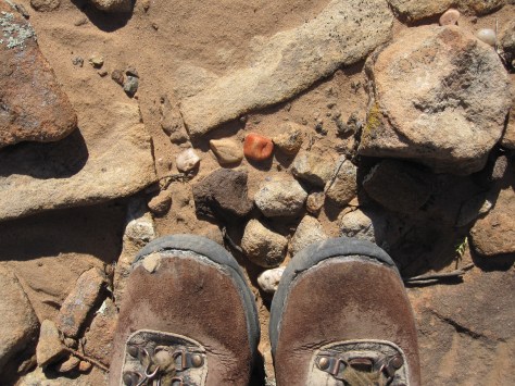 On a ridge in the low hills near the highway, a micaceous mano rested like an Easter egg in a nest of cobbles nearly the same size and shape. It was Archaic, a rounded lozenge with one smooth and one pecked side. There in its stone nest it will stay, with the hill slowly eroding out from under it.