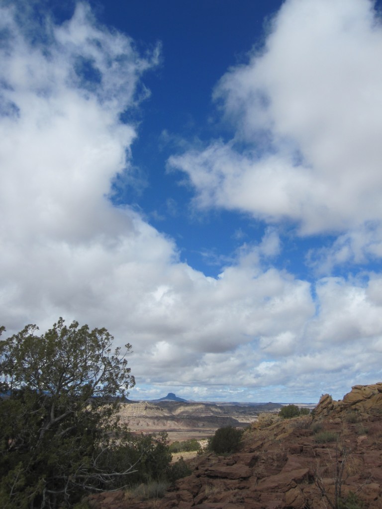 Penistaja Mesa, tohellandgone west of Cuba. Cabezón dim and blue on the horizon. Tertiary strata, sometimes black with almost-coal. Everywhere petrified wood: enormous whole logs weathering into chips, as though we walked through slash left by a mad stone woodcutter.