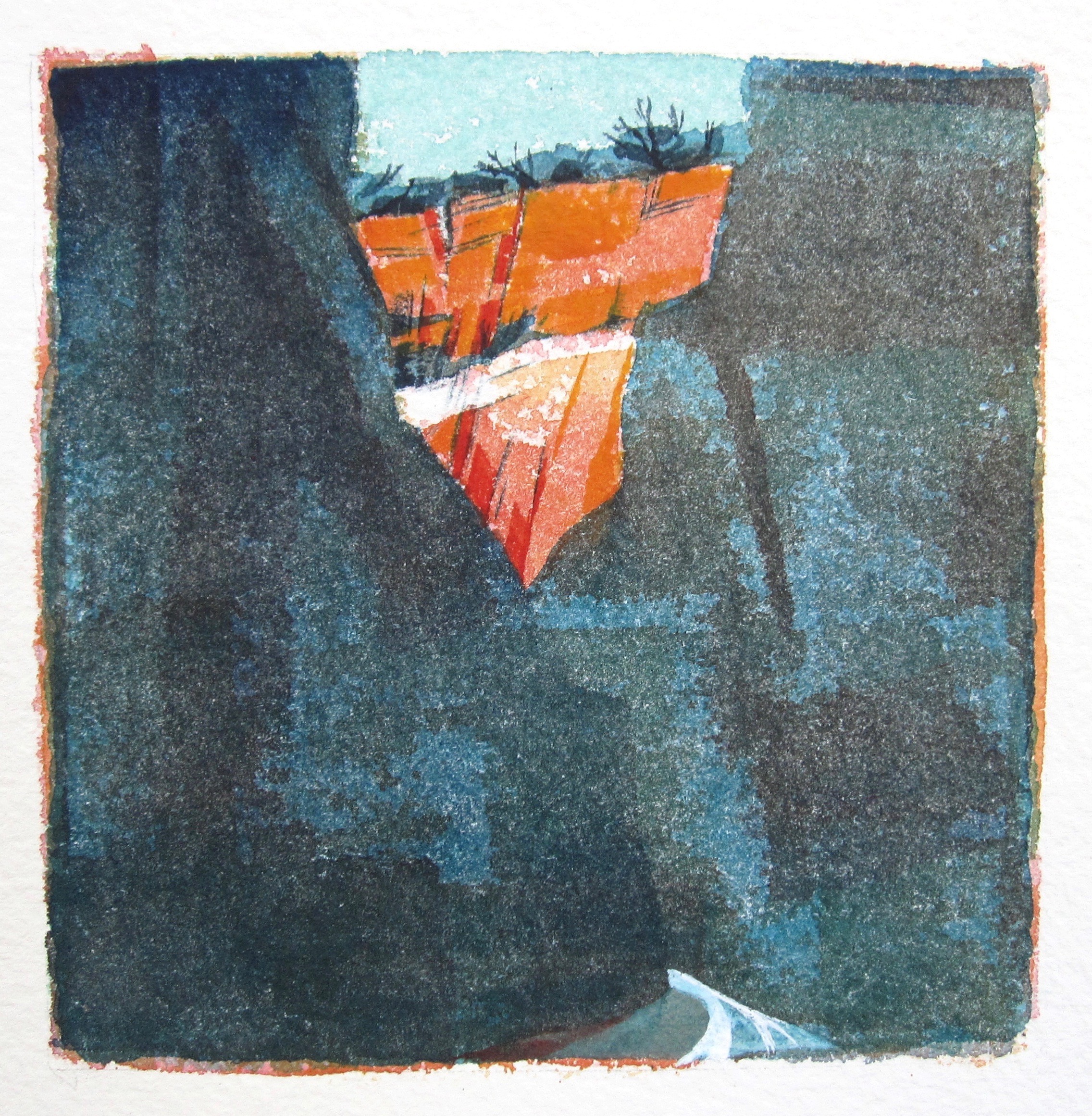 The square-cornered foundation and a couple of scattered sherds say Ancestral Pueblo, but both the vertical orientation and the size of the stones are unusual and impressive. Walls and roof–jacal style, the Southwest version of wattle-and-daub–have long since dissolved into the desert clay.