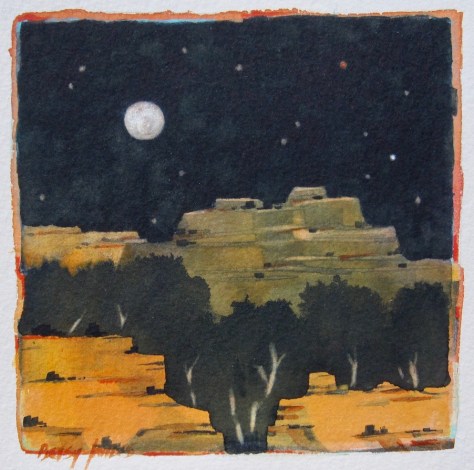 In the morning, as I drove down to meet the others at 7 a.m., the setting moon was about to touch the western horizon, oval as a big squashed orange. I stopped the pickup and said, “Oh!”
