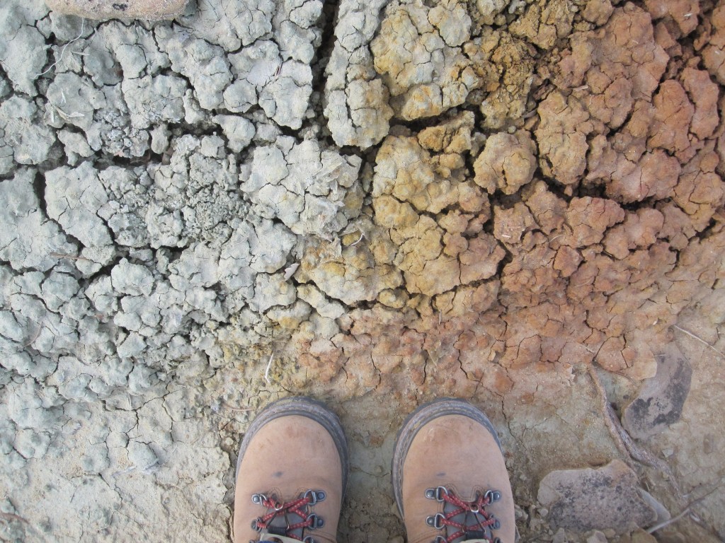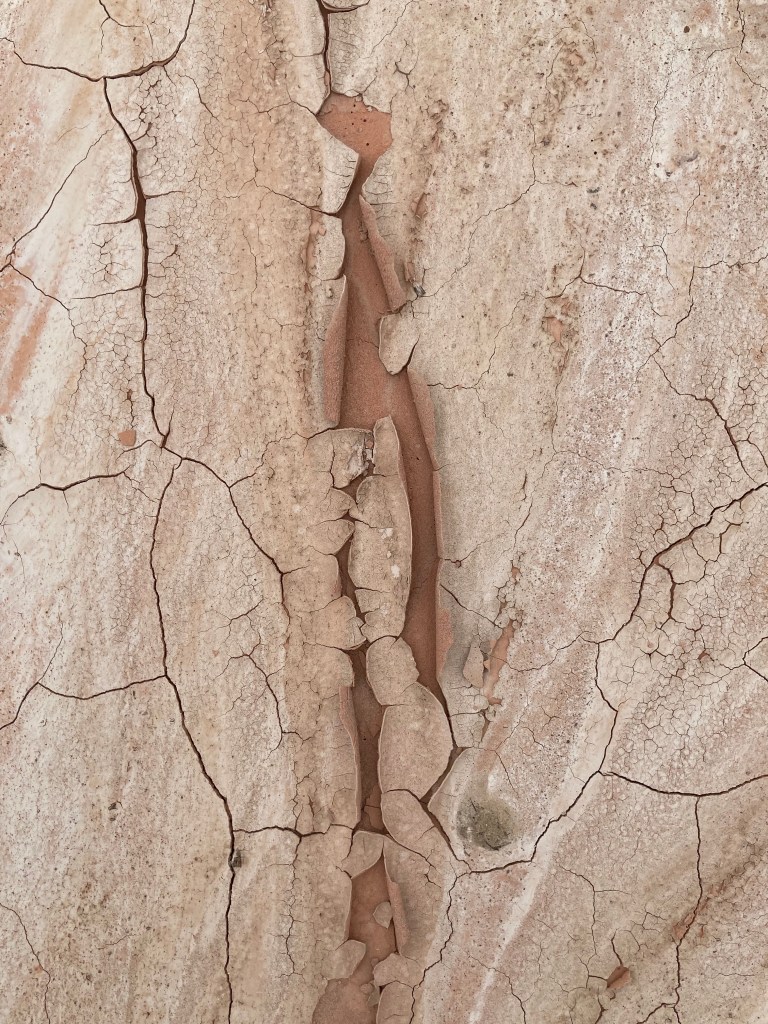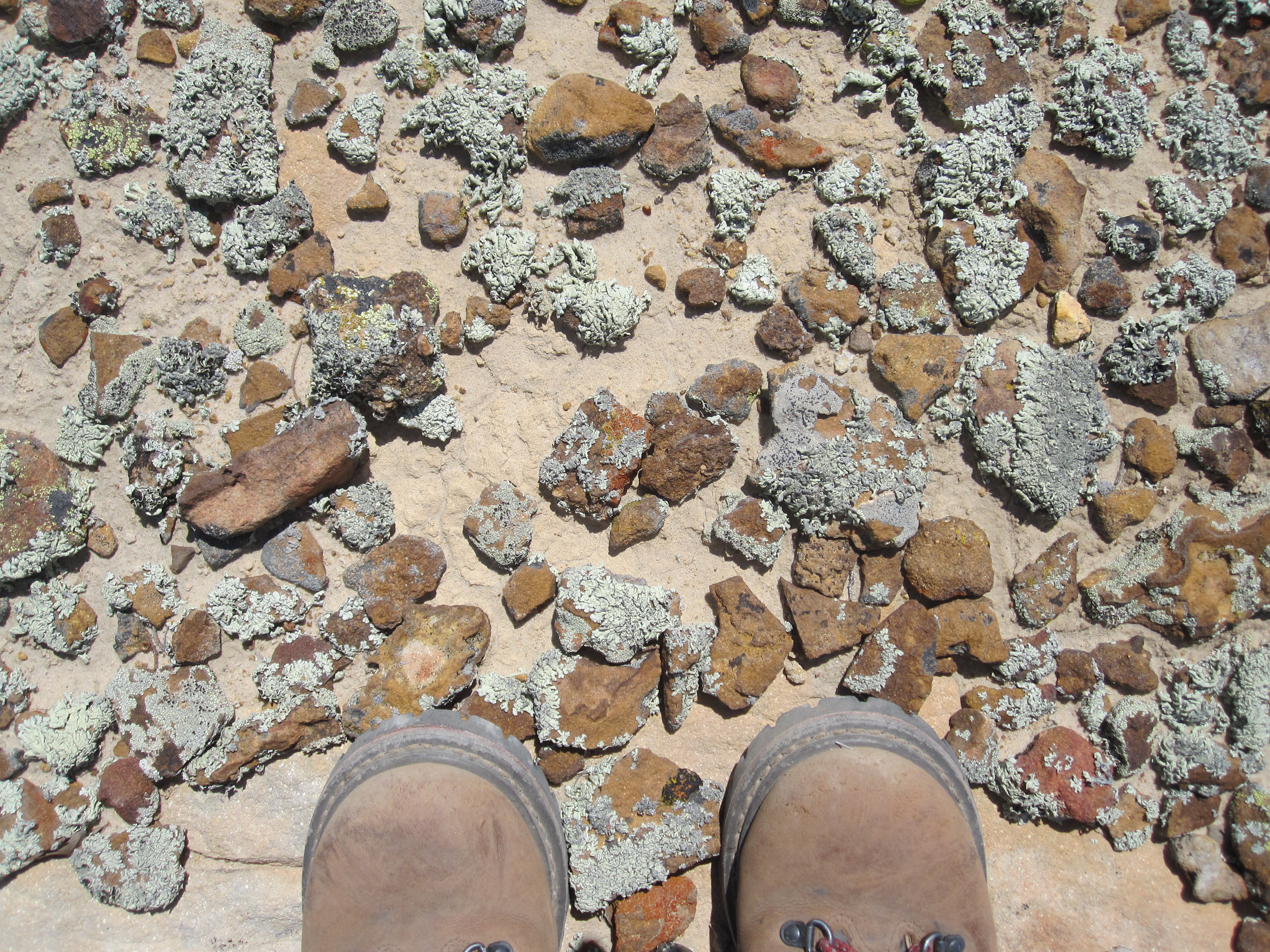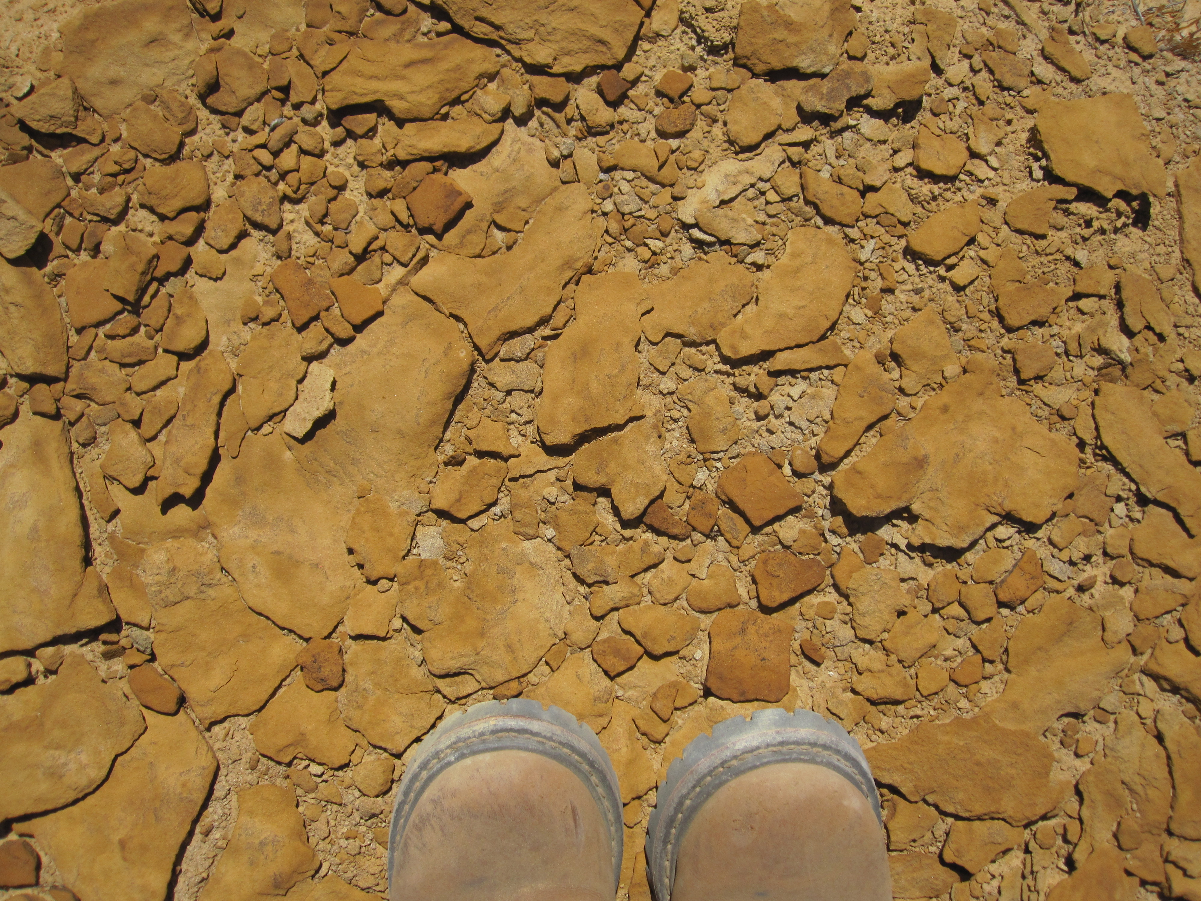We’re used to finding stone structures—stone is the building material out there—but we’d never seen anything like this. The unstable mudstone cliffs aren’t good for cliff dwellings, nor was this the regular, well-set look of an Ancestral Pueblo house or granary. Just stones, randomly stacked to fill a gap.