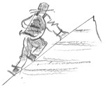 In the Jemez Mountains we hiked among the Tent Rocks: eerie, beautiful. Pink-white ashy pumice forms teepees, minarets, cupolas, gables, totem poles, shrines—their bases scalloped like coconut-cream popsicles, their tops jagged as blades. Don’t slide off; by the time you got to the bottom you’d be, not just dead, but completely skinned by volcanic glass. As we crept along the steep sides of the hills each of us touched the slope with one hand.