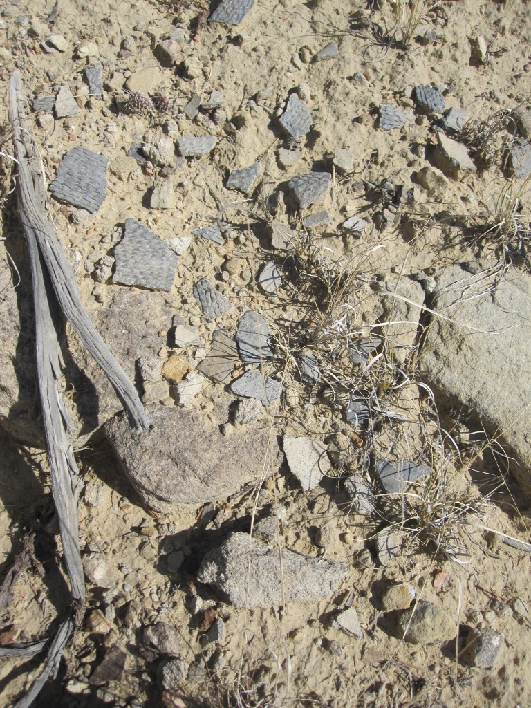On the slope below a line of rubble that might–or, in that stony country, might not–have been a tiny ruin, was a cascade of the coarse grayware of the Late Archaic.